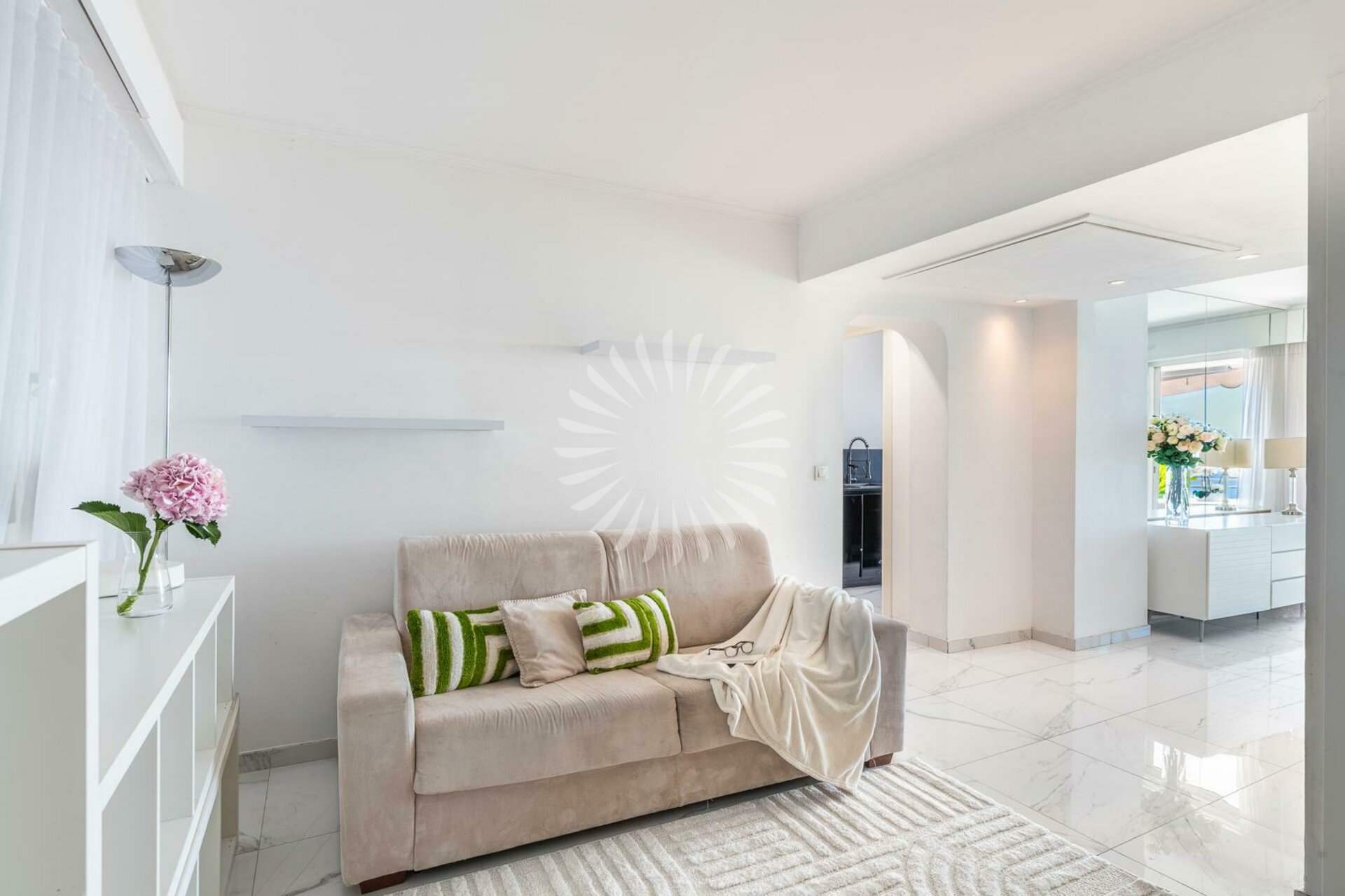 Möblierte Jahresmiete: Entdecken Sie diese prächtige Wohnung in einer voll möblierten Hochetage in einer Luxusresidenz in Cap d'Ail, nur wenige Meter von Monaco entfernt.